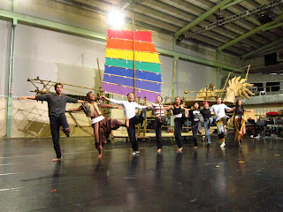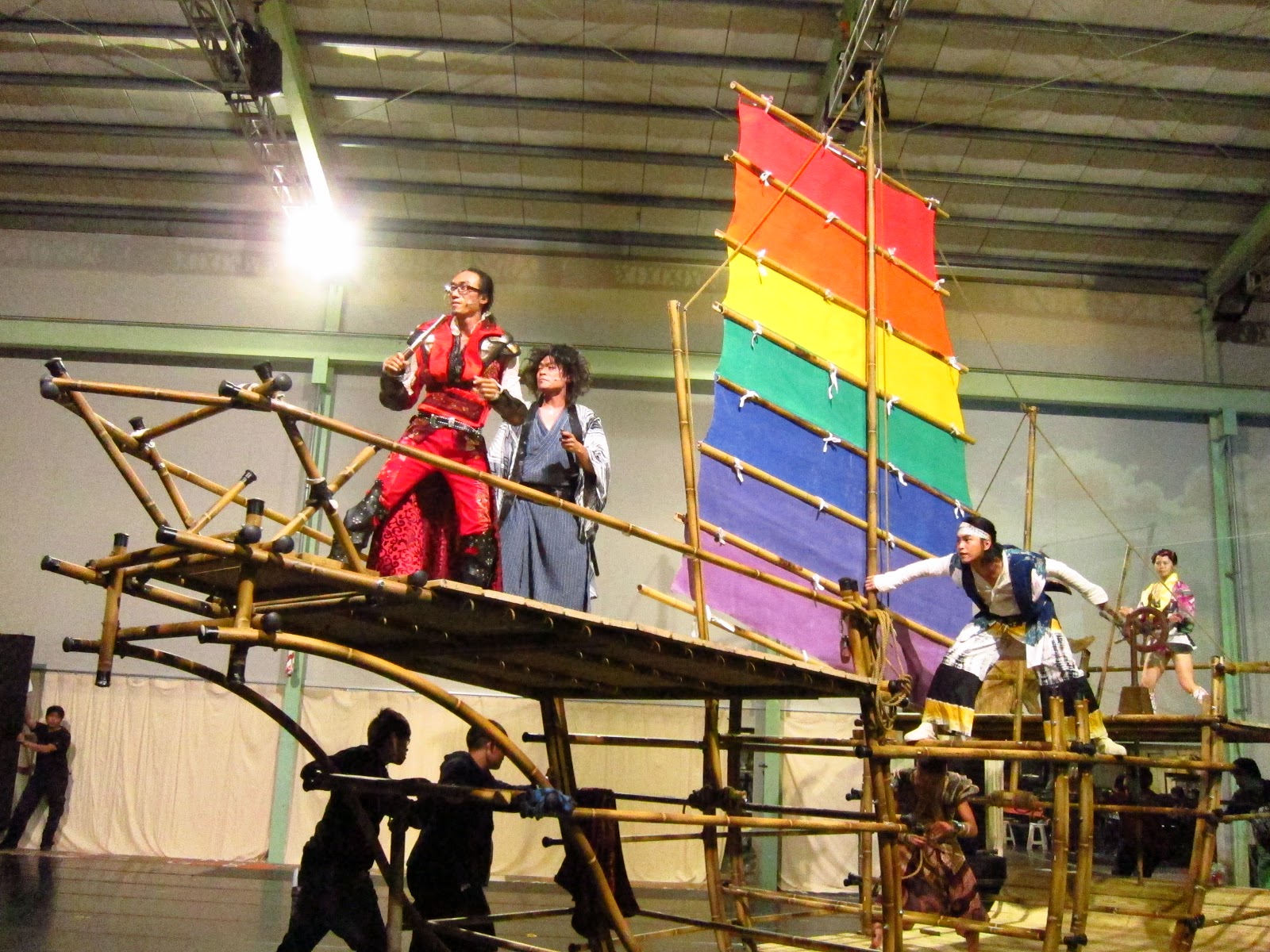 看起來很有氣勢的彩虹號,對演員來說可是個大挑戰!他們在船上歌唱、舞蹈、追逐、比武對打,甚至要跟著船隻乘風破浪,搖擺演出,展現真如海上航行的驚險與刺激。戲中扮演海賊的演員們,在排練場上也展現了同樣的精神,勇敢、堅持、並且團結合作,將每一個角色詮釋的淋漓盡致,他們所追尋的,是一個什麼樣的遠方呢?讓他們付出生命去玩的,又是一個什麼樣的故事?一定要進劇場親身體驗!