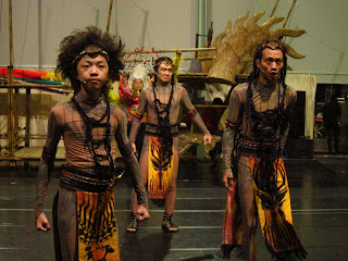 | 有著神祕力量的聖女「星眼」,是引導劇情的重要角色,半人半魚的造型,深具創意的白色魚尾和彩色魚鱗設計,讓她一出現立即吸引全場目光。飾演星眼的演員郭姿君,念書時主修聲樂,有著餘音繞樑的好歌聲,清亮的嗓音將貫徹劇院,帶給大家最有質感的聽覺饗宴。 |